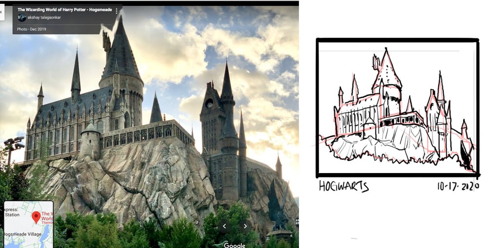 In this class, we went to Harry Potter World (Hogsmead) and did 3 sketches.
